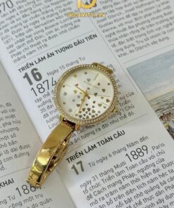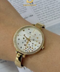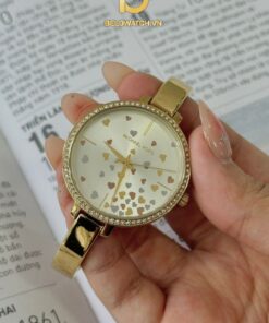 MICHAEL KORS MK3977 dây kiềng nữ tính dành cho các cô nàng cổ tay nhỏ nhắn, mặt chạm nổi hoạ tiết trái tim cực tỉ mỉ với màu Gold sang chảnh.