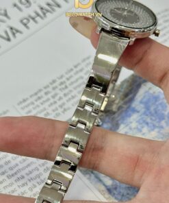 Sunrise 9987SA đầy quyến rũ với mặt số đen, điểm tô bởi hàng trăm viên đá Swarovski sáng lấp lánh. Bộ kim Dauphine bạc nhỏ gọn nằm trọn trong phần tâm của mặt dial. Dây đeo dạng vòng tay được chế tác từ thép không gỉ, mang đến sự chắc chắn….